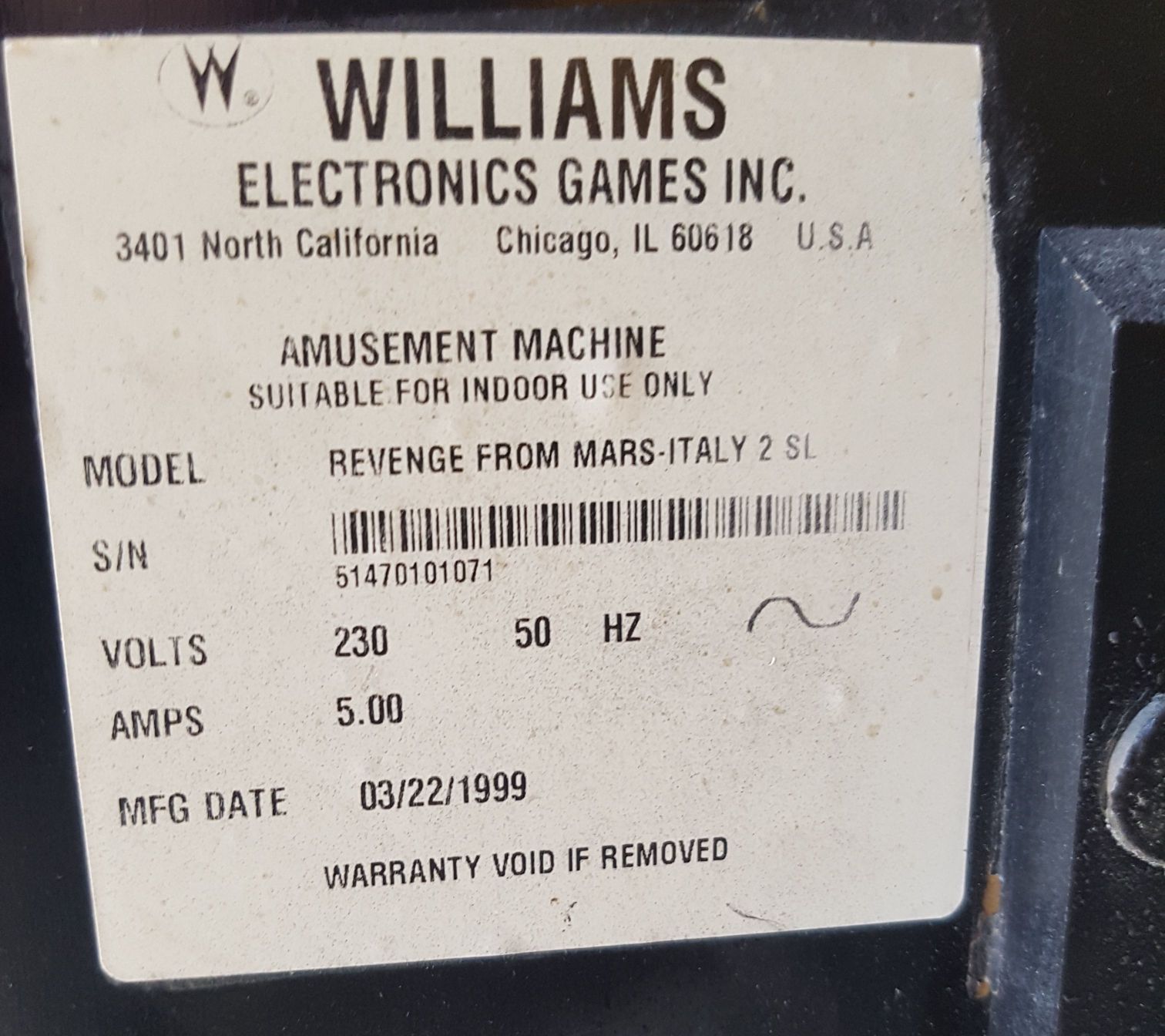 Later Label of this game as Italian 2-Slot Version 1071 outside the cabinet